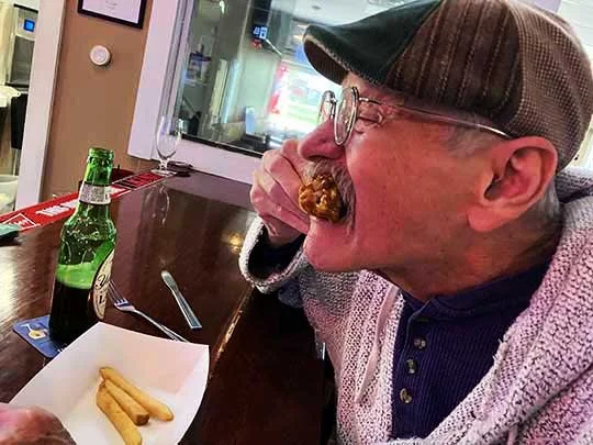 Nice and thin and lightly breaded, just the way both Scott and I like them. They were a tasty treat and got a thumbs up from Scott, who’s an onion ring aficionado!