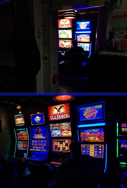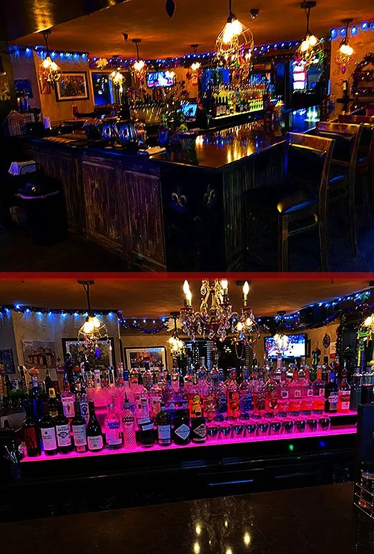 Here’s the other side of the bar and check out the lit-up bottles on display there!