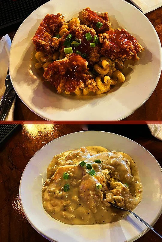 The Buffalo Mac and Cheese was a tasty and spicy treat and Bill said the Biscuits and Gravy were delicious.