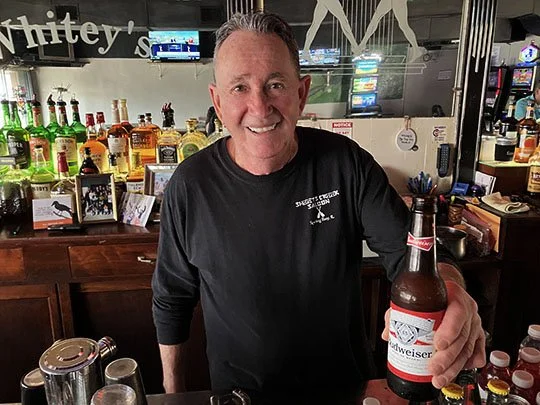 I forgot to take a photo of Jim at the bar, so here’s one of him at CT’s Grill & Chill bar a couple of weeks ago. He still looks the same!