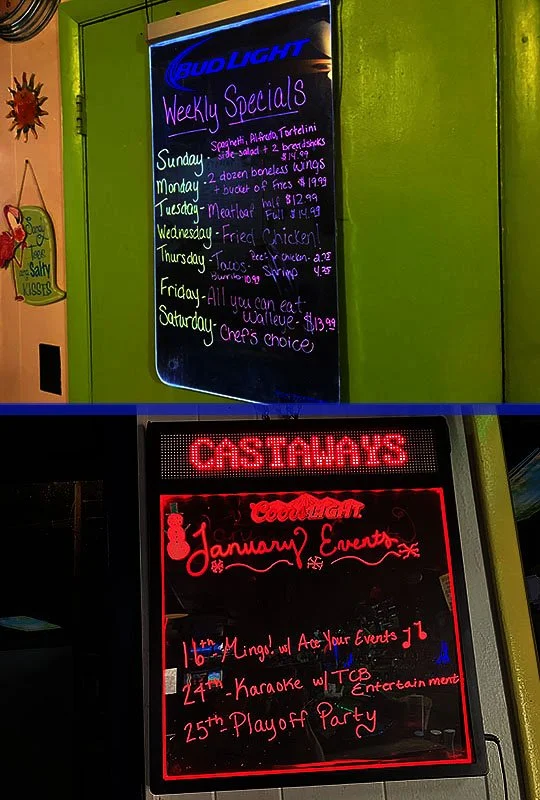 The specials of the day and evening are all listed here. Hmm…I see tacos at the top of the list…keep on scrolling to see if I chose to order those this evening!