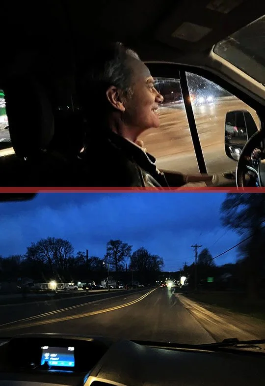 There’s Jim/Vern behind the wheel as we glide down Farmington Road to Hanna City.