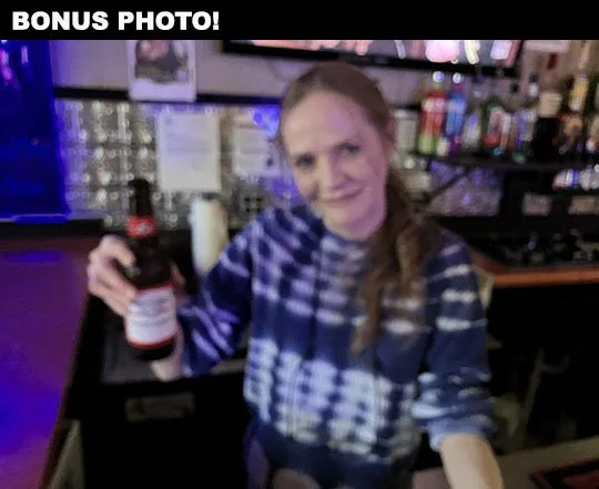 I took a photo of bartender April and it fuzzed out on me for some reason. Hate the I-phone camera, hate, hate, HATE it!