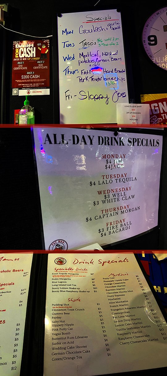 There’s the back of the bar and a sign showing their many signature drinks you can order in here.