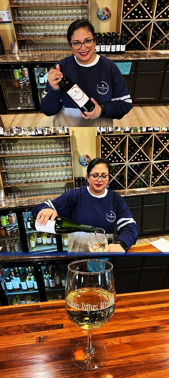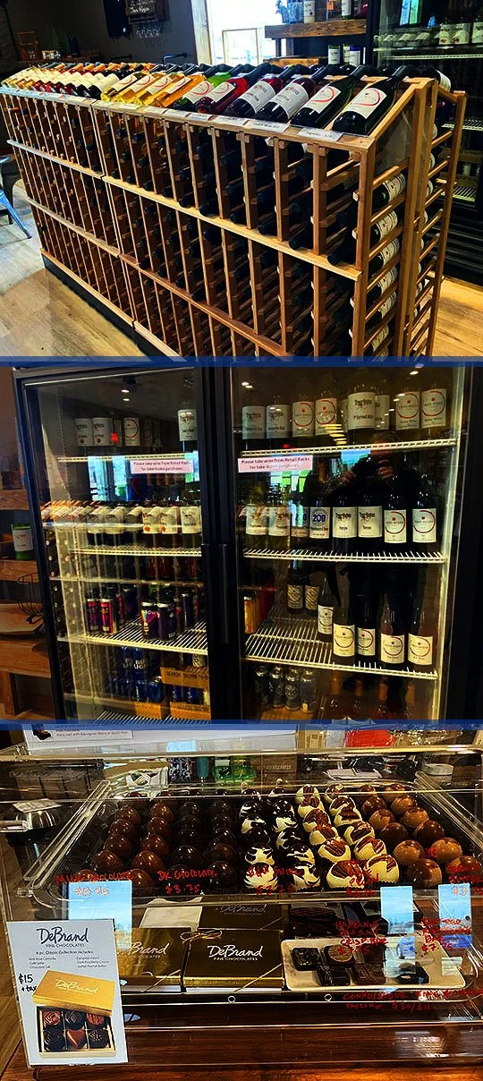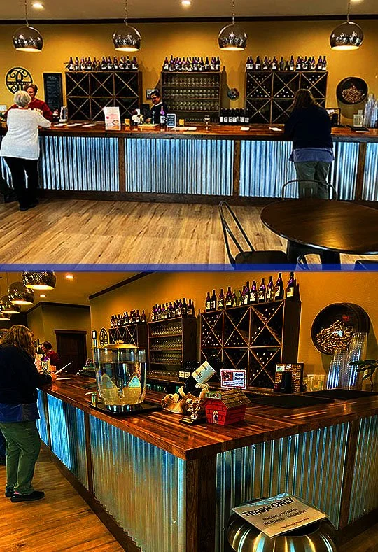 There’s the back of the bar and there’s bottles of wine right next to it.