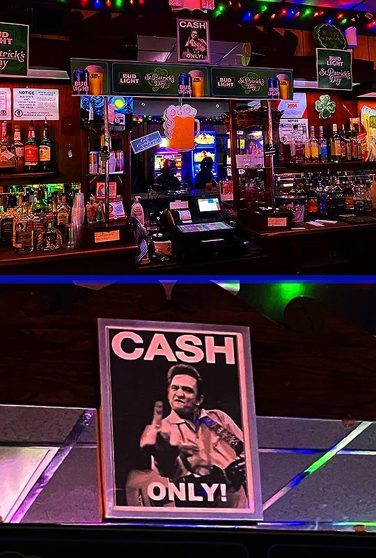 Here’s the back of the bar and I love the “Cash Only!” sign!