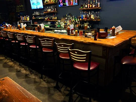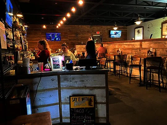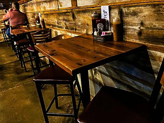 There’s dining tables and chairs up front in the dining room and there’s more directly behind the bar.