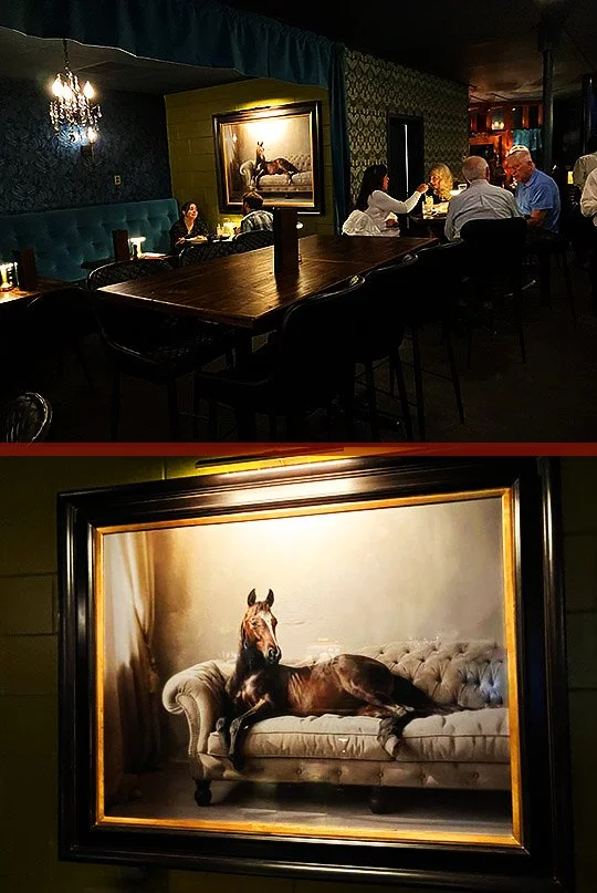 There’s more tables over here, opposite the bar and I love that painting on the wall of the horse lounging on an elegant sofa. It really captures the vibe of this place!