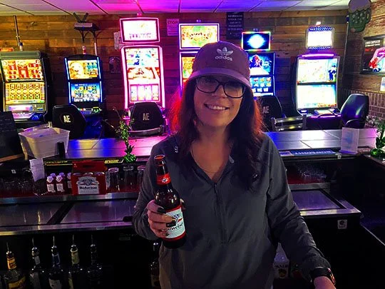 Ashley was the pretty bartender on duty and here she is serving up that aforementioned first drink, which is a bottle of ice-cold Budweiser. Everything is going perfect at this point!