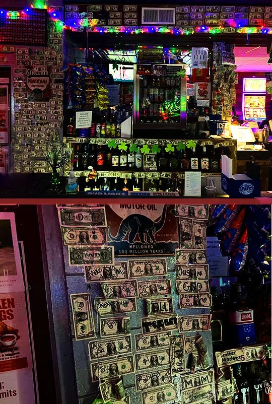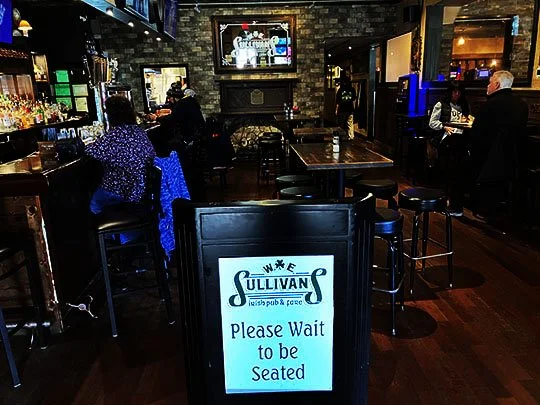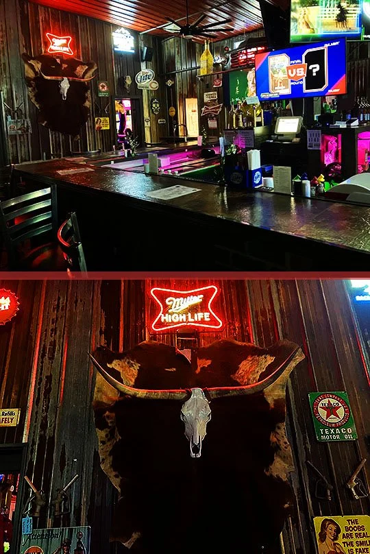 There’s the bar in the front room in here. Let’s get settled in and order the first drink of the evening.
