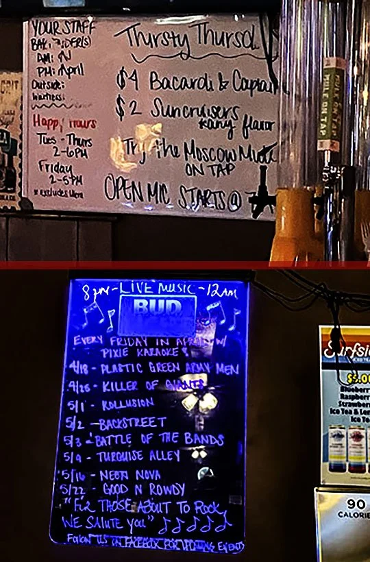 They also have a sign listing the live music happening in here. The first show is tonight with the Plastic Green Army Men.