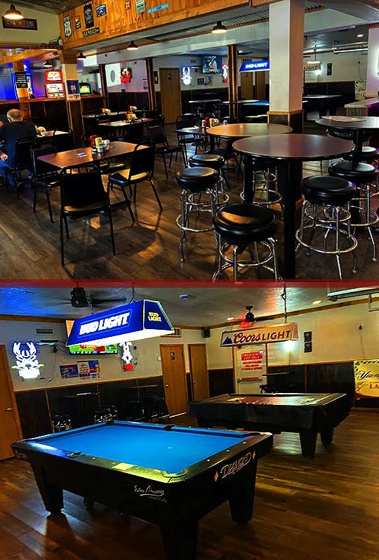 There’s a dining room in the front section and the bar is located in the back.