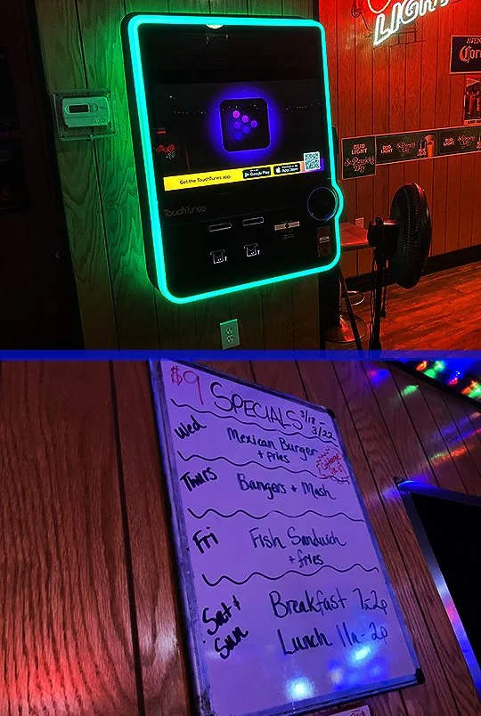 There’s the jukebox and the daily specials are listed on this board on this wall.