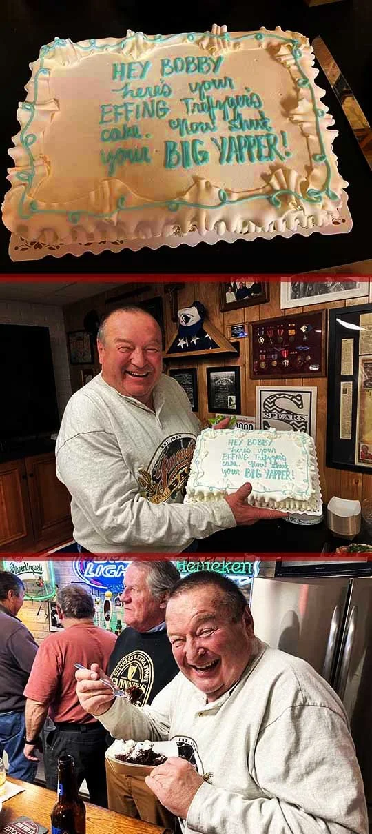 As the cake says, here’s your effing Trefzger’s cake Bobby, now shut your big yapper! As you can see, he enjoyed the cake!