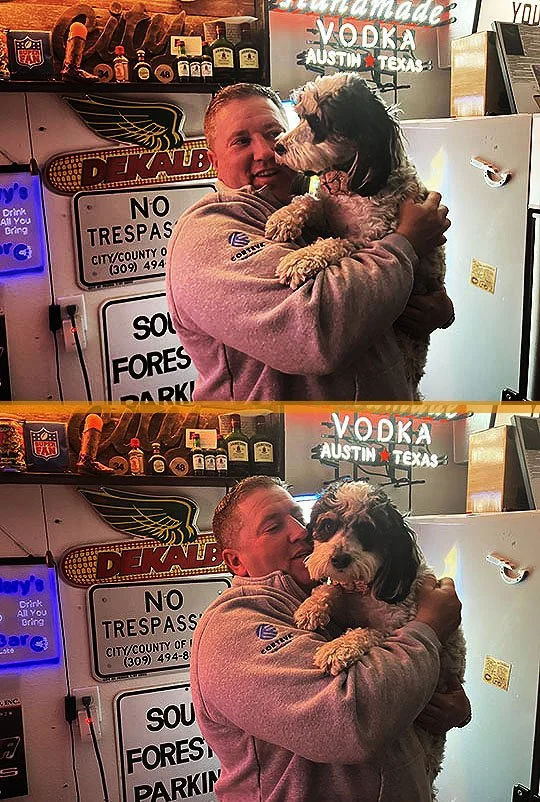 Bonnie is the official mascot of the bar! Here she is with Marcus looking cute as twelve buttons!