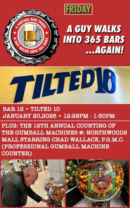 It’s another landmark night, we’re hitting the teens here on the 365 bar crawl! Tonight I thought we’d use some of the generous donation money donated by Nathan Tonnies and go to Po-Boys On Frostwood and sample a few of their signature drinks.