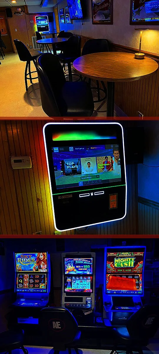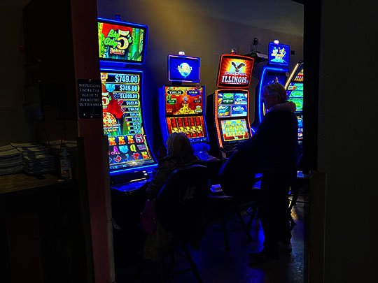 There’s gaming machines lined up against the back wall over here.