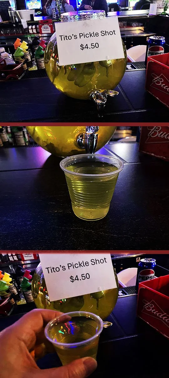 For dessert, Ashley poured us a shot of the Tito’s Pickle Shot and it was so tasty! Just the right amount of spice and heat in this house-made savory vodka shot!