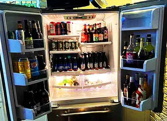 Not only is the bar well-stocked the refrigerator next to it is as well!