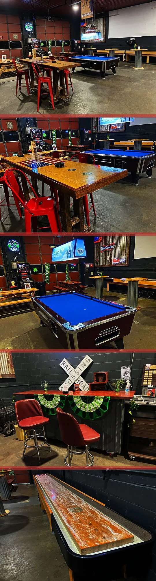 There’s communal tables, a pool table, another bar and a long shuffleboard table back here.