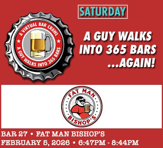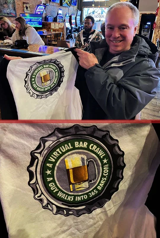 He came with a shirt from the original 365 bar crawl from over 16 years ago, very cool! The shirt was designed by my friend, “Boris,” who designed the current banner at the top of the page. Thanks for bringing that along, Bill!