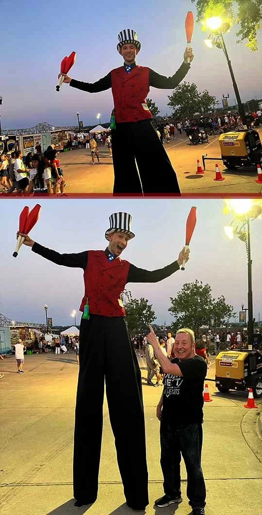 This tall fellow posed for a photo and a woman was kind enough to take one of me with him to show his tall height!