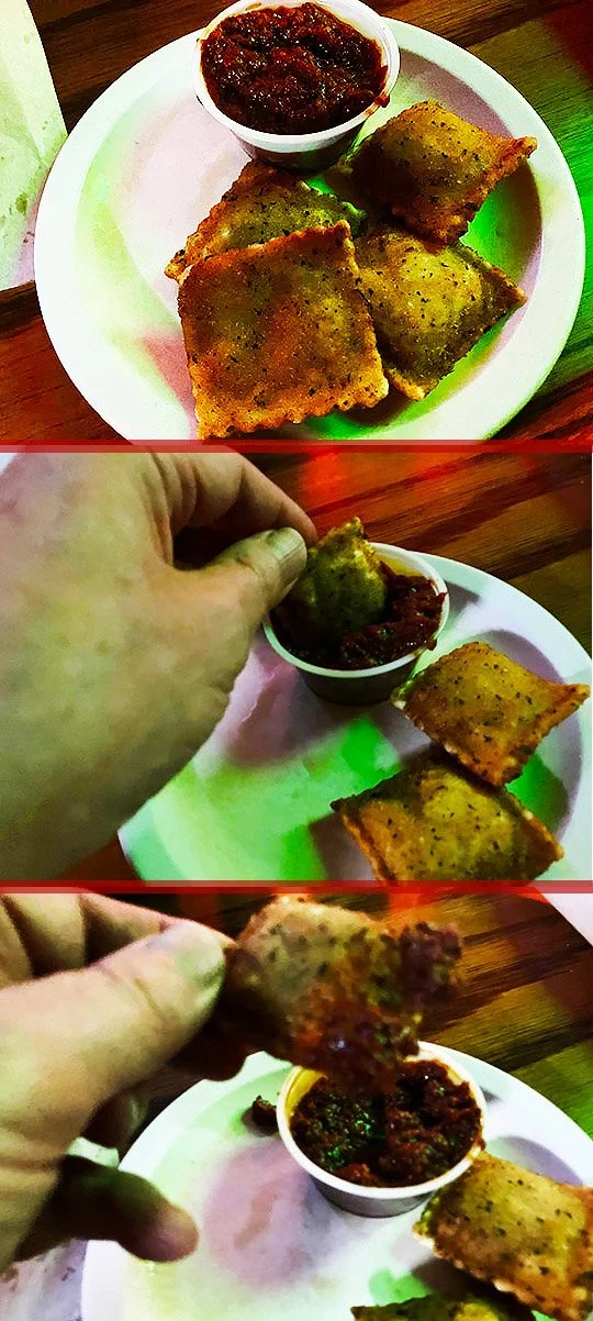Okay, the Chicken Tenders and Mozzarella Sticks are tasty and wonderful appetizers, but my favorite appetizer here at Agatucci’s is the Fried Ravioli, so that’s the one we’re going to feature and rate.