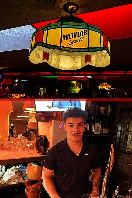 I always have to get a photo of the classic Michelob light hanging over the bar and there’s Frankie working this end of the bar.