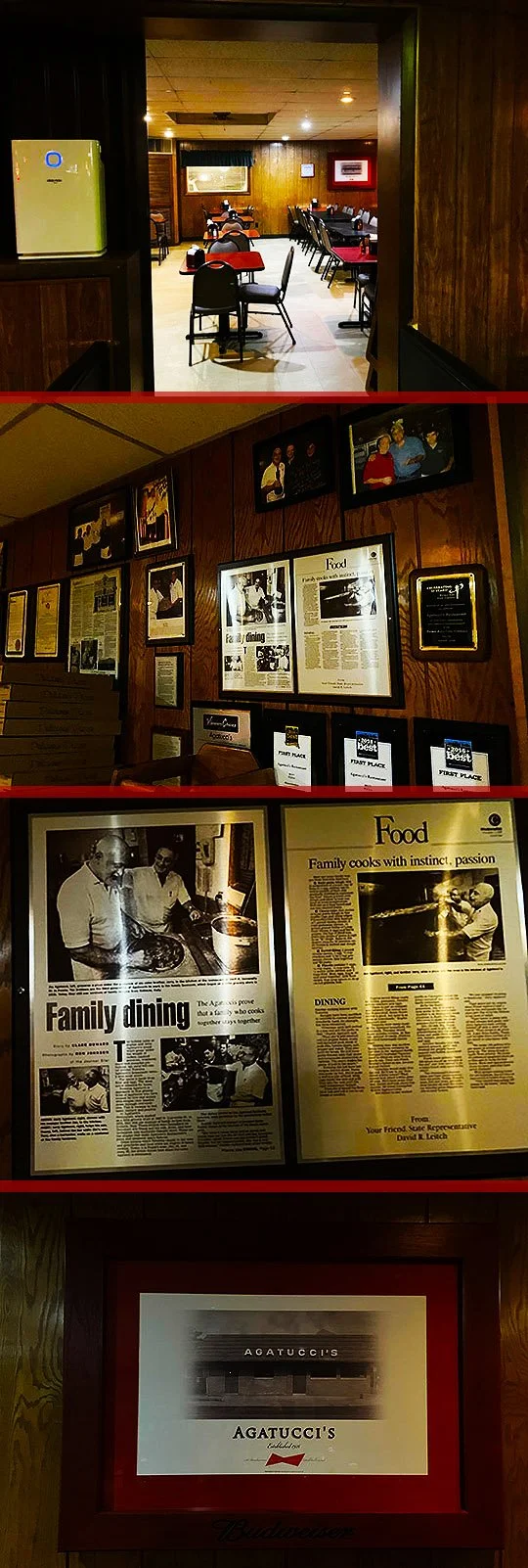Tha back room has a whole wall of press clippings about Agatucci’s through the years.