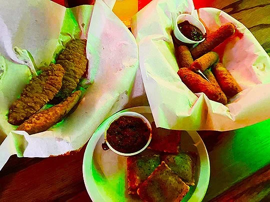 From the left, Chicken Tenders, Fried Ravioli and Mozzarella Sticks.