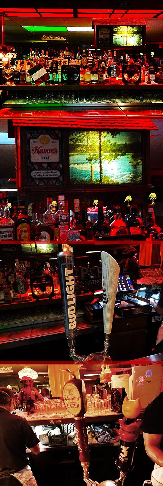 There’s the back of the bar with the historic Hamm’s beer sign on the wall.