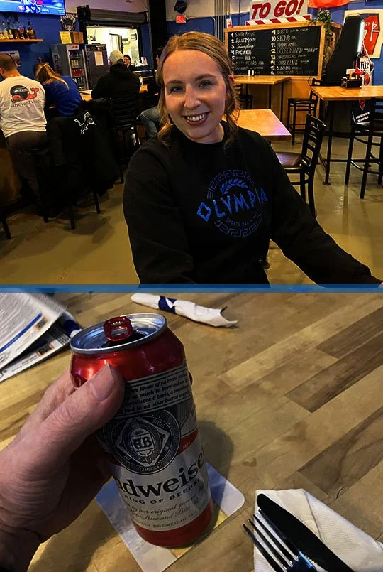 Our pretty server for the evening is Reagan and she delivered me a 16 ounce Budweiser tallboy to start the evening off! Cheers!