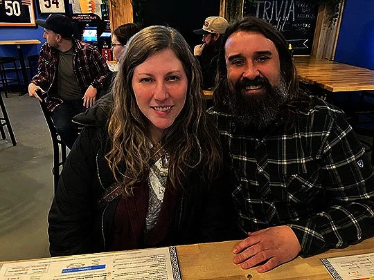 There’s Amber and Joe settled in to our spot in the middle of the long and winding bar at Olympia!