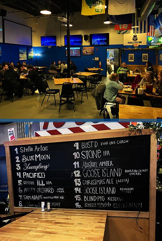 Here’s the back dining room and a listing of the 16 beers on tap!
