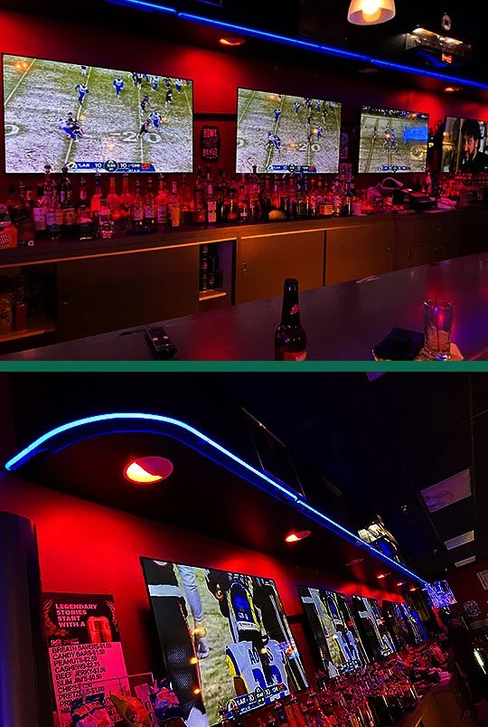 As you can see the bar is well-stocked and they have four large screen TV’s back there on the wall.