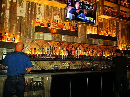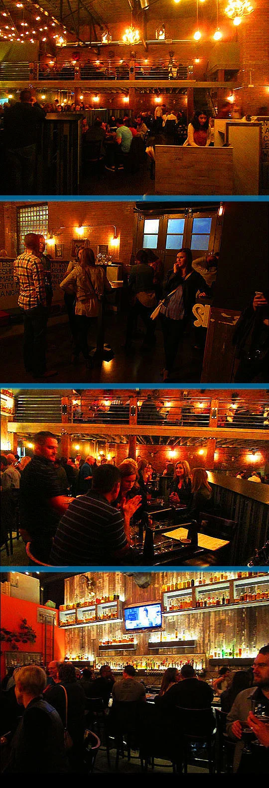 The back of the bar is really spectacular and the dining room is located directly behind the bar and there’s another dining area opposite that in the back of the room. It’s really spacious in here and it has a real rustic and urban feel to it.