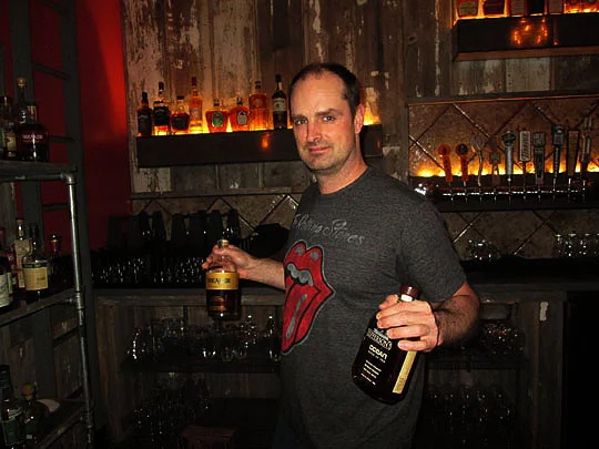 Here’s Jason another bartender on duty tonight showing off just two of the 100 brands of bourbon available here at Thyme. And while he’s on the ground...