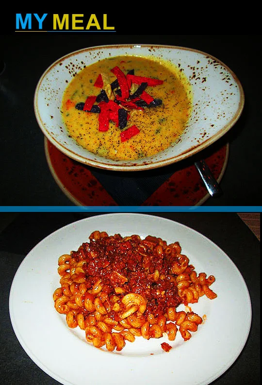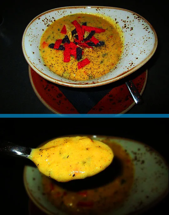 Okay, here comes dinner! I started off with a bowl of the Smokey Poblano and Cheese Soup. It was rich, thick, smokey, cheesy and very delicious!
