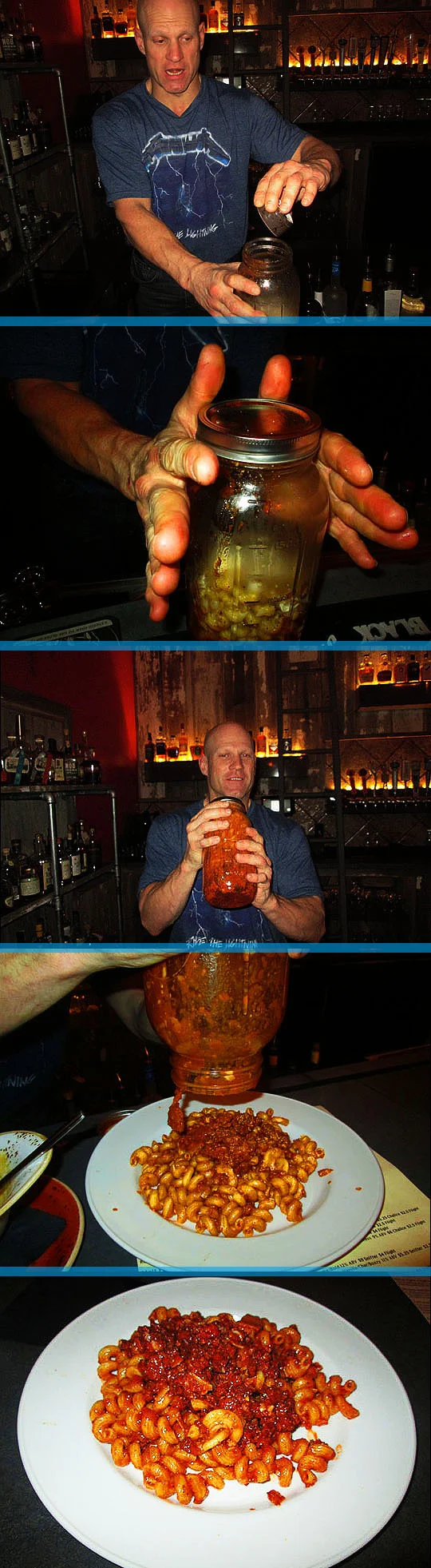For my main course, I got the Pasta in Jar, which was recommended by bartender, Aaron. Well, Aaron certainly steered me in the right direction! It’s called Pasta in Jar, because the pasta and sauce arrives at your table (at the bar in my case) in a jar. Aaron then added cheese to it and shook it up like a giant martini shaker and then poured it on to the plate. It’s a real fun presentation and it turned out to be a delicious one as well! The pasta is Cavatappi corkscrew pasta and it was cooked slightly al dente, which is just the way I like it. It’s served with fresh Parmesan cheese and a Bolognese sauce. The sauce was really tasty and it has smoked short ribs blended in which really gave it a nice savory and rich flavor and there was just a hint of sweetness in the sauce. It was a wonderful meal and I can’t wait to go back and try more!
