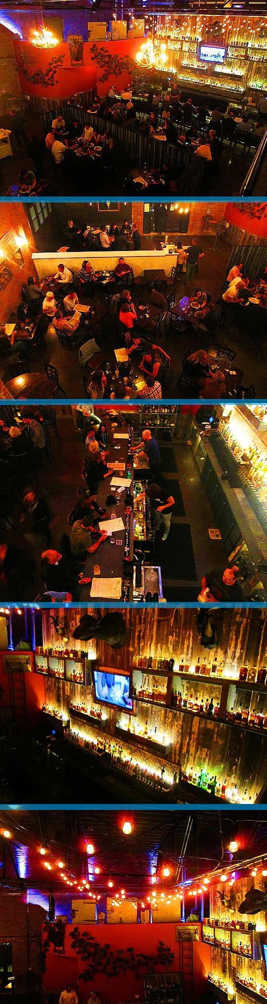 Aaron is moving up in the world on the bar’s ladder fetching bourbon drinks from some of the really top shelf drinks in the back of the bar. This is really nosebleed country up there!