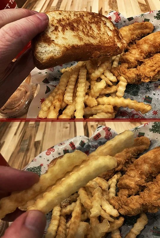 Both Weaver’s and Raising Cane’s offer a three piece combo meal with Texas toast and French Fries, so that’s what we’ll be ordering for this day’s chicken finger challenge.