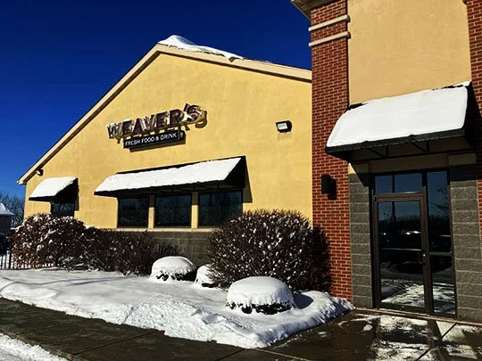 Here we are at the first challenger in the chicken finger fight, Weaver’s Fresh Food & Drink on Radnor Road just off of Willow Knolls Road. And there’s some of that snow I just told you about! Let’s go inside and get warmed up!