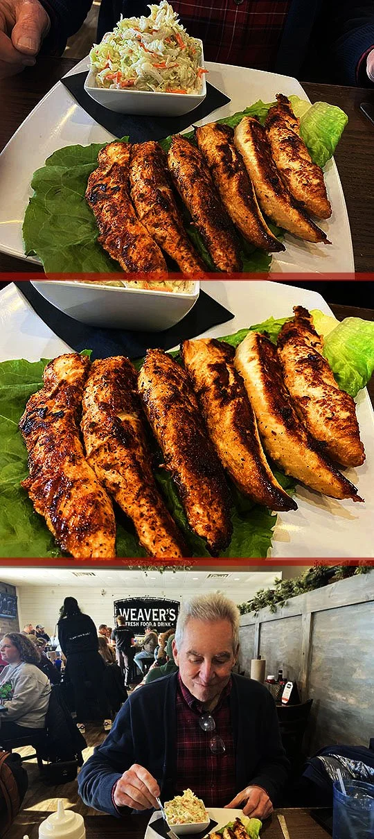 My brother Tom joined me on this afternoon trip to Weaver’s and there’s the Chicken Fingers on the menu.