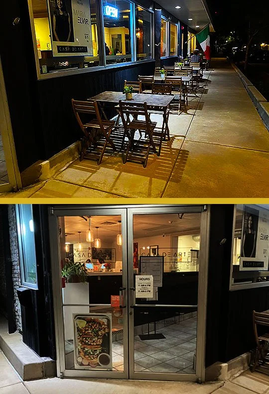 Here we are at this week’s Saturday night destination, Casa de Arte on Adams Street in downtown Peoria.