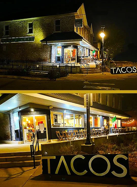 As you enter, you see this sign with three very important things in life: Art, Tequila and Tacos!