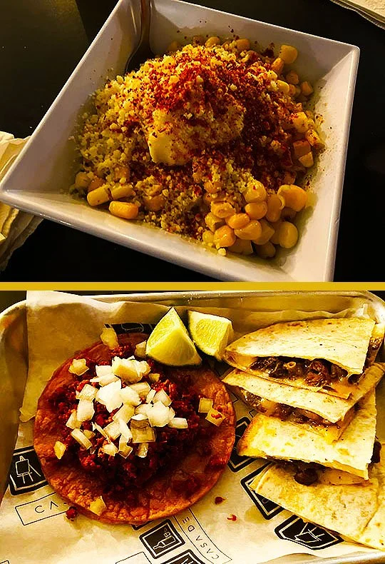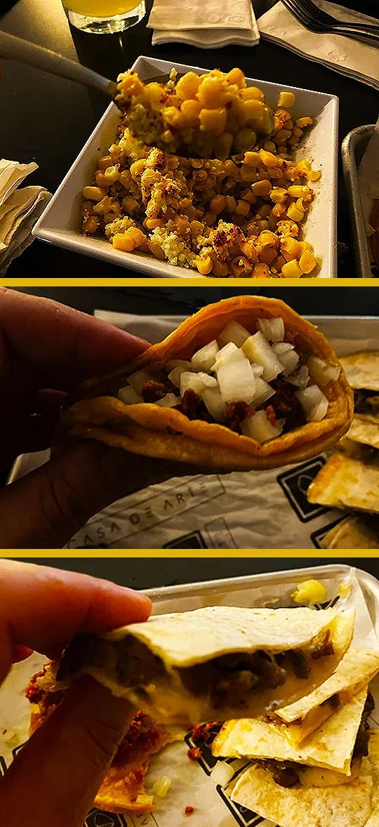 I got an order of the Elote/Street Corn, a Chorizo Taco and a Steak Quesadilla.