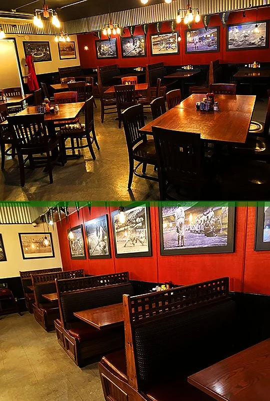 There’s also a dining room over here and comfortable booths line the far back wall.