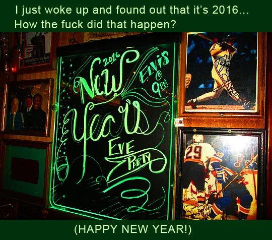 Okay, it’s officially January 1st, which means only one thing...my rent is due! Okay, it’s also the start of a brand new year, 2016. I seriously don’t know what happened to last year, but it is gone with the wind and and a couple of pairs of socks. I’m not a big one for going out on New Year’s Eve, but last year I was invited to Phil and Karen Luciano’s New Year’s Eve pajama party at Jimmy’s Bar which happens in the afternoon and I had a good time at that, so I decided to go again this year. Then I got an invitation to a party at my friends Shannon and Steven’s house and that party was planned to start right about when the Jimmy’s party was ending, so I stopped in there for a couple of hours and got home at an early time before all the madness started. And here’s some pictures from yesterday’s festivities below. I’m going to be lazy and not caption them because it’s a holiday and the last one for a while, so I’m going to enjoy it!
