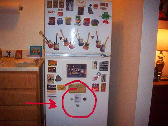 And here they are at home on my fridge...hmmm, they've got a bit of a Cardboard Box Man mutation going on.