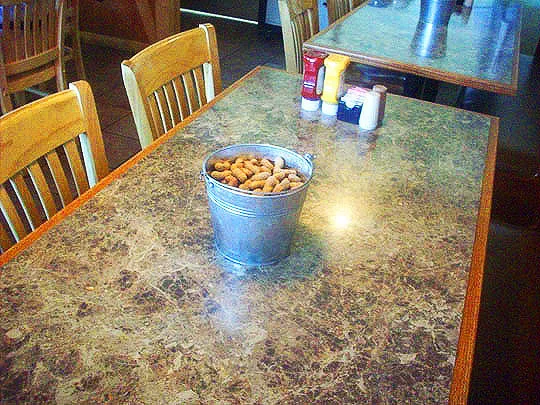 The peanut shells are piling up as I wait for the cheeseburger to be served up.